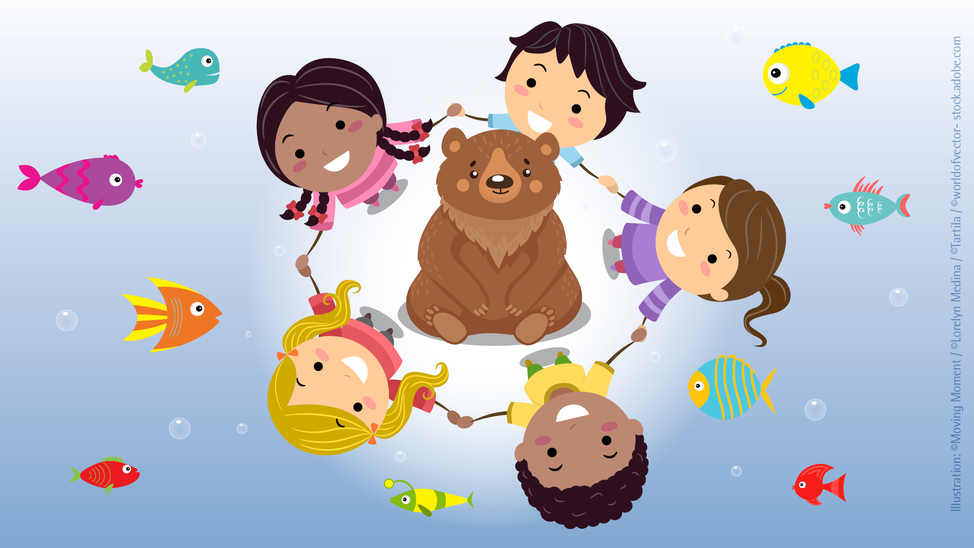 Im Video habt ihr gesehen, dass die Brillenbären im Zoo Duisburg Allesfresser sind: Sie bekommen Obst, Gemüse und Wurzeln, aber besonders lieben sie Honig und Walnüsse. Diese Leckereien gibt es natürlich nur in Maßen. Und da Brillenbären keine Vegetarier sind, gehören auch Fleisch und Fisch zum Speiseplan der Brillenbären. Dies greift auch das nachfolgende Spiel auf, in dem es gilt, schnell zu reagieren: EineR von euch ist der Brillenbär, die anderen Kinder sind die Fische. Viel Spaß!
