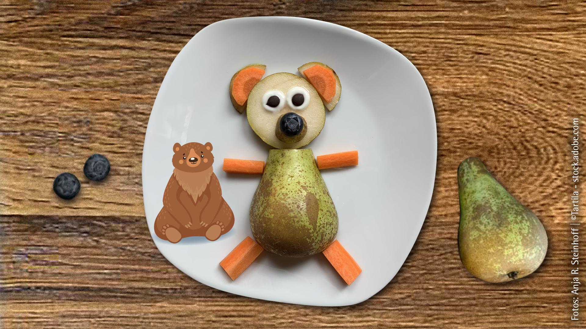 Dieser süße Rohkost-Snack ist ganz schnell zubereitet. Und genauso schnell werdet ihr ihn wahrscheinlich aufessen wollen, so lecker ist er. Viel Spaß beim Zubereiten des lustigen Birnen-Bären.